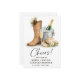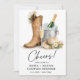 Celebrate your love story with this elegant rustic western wedding invitation featuring cowboy boots, champagne, and soft floral details.