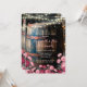 Dieses charmante, rustikale Whisky-Fass dient als einzigartiges Hochzeitsdekor und besticht durch ein verwittertes, altertümliches Aussehen, das Vintage Eleganz ausstrahlt. Auf einer Holzplattform steht das Fass mit einem robusten Deckel überzogen, ideal für dekorative Akzente oder funktionale Darstellung. Eine warme Lichterkette, die um einen Holzpfosten herum gewickelt ist, beleuchtet sanft den dunklen Hintergrund und schafft ein einladendes Ambiente. Feine rosa und bordeauxfarbene Blumen bilden den Hintergrund der Szene und sorgen für eine romantische und raffinierte Touch, die sich ideal für eine Hochzeit im rustikalen Stil, in der Scheune oder im Landhausstil eignet.
