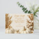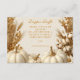 Ein gemütliches, im Herbst inspiriertes Babyduschdesign mit weißen Kürbissen in Aquarelltönen, getrocknetem Weizen und weichen Baumwollfäden. Mit seinem rustikalen Erntecharme und seinen neutralen Tönen schafft dieses Design den perfekten Rahmen für ein warmes Herbstfest.