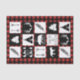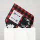 Rustikale Wildnistiere und -symbole in Schwarz und Weiß über einem Büffel-Karo karierte Muster in Schwarz und Rot.