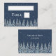 Winter wedding table place setting cards rustic country forest at night covered in snow in navy blue and white.