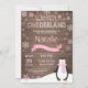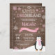 Rustikale Wintereinladung Onederland 1. Geburtstag. Pinguin. Rosa und weiße Schneeflocke. Der erste Geburtstag. Mädchen 1. Tag Einladung. Rustikaler Holzhintergrund. Für weitere Anpassungen klicken Sie bitte auf die Schaltfläche "Anpassen" und verwenden Sie unser Designwerkzeug, um diese Vorlage zu ändern.