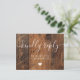 Eine rustikale Holzhütte boho RSVP Karte mit schicker Typografie. Auf der Rückseite finden Sie Ihre Details und eine lustige Gesangsanfrage. Entwickelt von Thisisnotme©