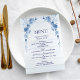 Rustic Wood Blue Floral Elegant Wedding Menu Menükarte