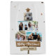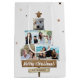 Erstellen Sie eine saisonale Weihnachtscollage mit fünf Bildern, die an einer Holzstange befestigt sind, um einen Weihnachtsbaum zu formen. Die Einrichtung besteht aus zwei Holzschildern und beige-braunen Sternen. Großartiges Urlaubsgeschenk für Ihre Familie und Freunde. Für diese Collage benötigen Sie vier quadratische Bilder und ein Foto mit horizontaler Ausrichtung für einen einzigartigen und ganz besonderen Frohen Weihnachtsgrüßen.