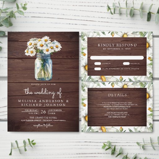 Daisies Floral Mason Jar Wood Wedding SuiteDesignt von Shabbir D