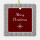 Rustikale Weihnachtsschmuck, mit einem Holzbild und einem tiefen roten Hintergrund. Mit der weißen Typografie können Sie dieses Objekt mit Ihrem eigenen Text anpassen. Eine einfache Ergänzung zu Ihrem Festtagsbaum.