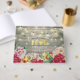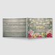 Hochzeit Gästebuch Vorlagen - Elegantes Goldschreiber mit Blumen- und Streichleuchten auf rustikalem Holzhintergrund. Ein perfektes Design für Ihren großen Tag! Alle Textstile, Farben, Größen können an Ihre Bedürfnisse angepasst werden.