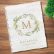 Rustic Wood Floral Watercolor Monogram Planner. A dainty, boho watercolor wreath with your custom monogram and name in an elegant gold serif typography. This design features a warm, light wood rustic background.