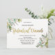 Entspannen Sie Ihre Gäste mit diesen rustikalen grünen Blättern und Imitaten goldfarbene Folie Probe Abendessen Party Einladungen. Dieses Design zeichnet sich durch ein rustikales Holzmuster mit viktorianischen Ecken aus, die mit Aquarellfarben-Blätter und Pflanze dekoriert sind und von mir bemalt wurden. Der vollständig anpassbare Druck enthält Imitate mit Goldschrift.