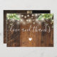 Rustic Wood Greenery String Lights Wedding Photo Dankeskarte