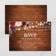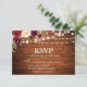 Rustic Wood Lights Burgundy Floral Wedding RSVP Karte
