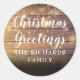 Rustic Wood Script Weihnachtsgrüße Familienname Runder Aufkleber