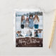 Niedliche rustikale Foto Postkarte zeigt vier Ihrer Lieblings-Bilder in einer Collage-Layout arrangiert. "Frohe Weihnachten" erscheint unter weißer Schrift auf einem rustikalen Holzboden mit Schneeflocken. Personalisieren Sie mit Ihren Namen, und fügen Sie ein zusätzliches Foto und eine persönliche Nachricht auf der Rückseite, zusammen mit Ihrer Rücksendeadresse.