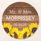 Rustic Wood Sunflower Mr. und Mrs. Gastgeschenk Ho Runder Pappuntersetzer