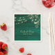 Elegante, moderne, rustikale Stallenholz grün personalisierte Hochzeitsnapkins mit goldblühenden Spitzen, Lichter mit Saiten und trendiger Kalligraphie-Schrift.