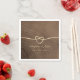 Einfache, elegante, rustikale Holz personalisierte Hochzeitsnapkins mit Goldseilherz und modernem Kalligrafieschreiben.