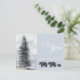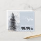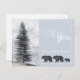 Eine rustikale Naturwaldkarte mit einem majestätischen Kiefernwald und Bären mit einem weichen pastellgrauen Hintergrund. Mama, Vater und Baby. Post Baby Dusche danke Karte.