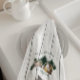 Rustic holiday kitchen towel with gray wood background and dark green trees. Photo templates via Pixabay licensed under CC0 and must be replaced with your own photo