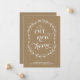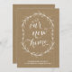 Diese elegante, rustikale "neue Zuhause"-Ankündigung enthält einen hübschen Blumenkranz, Kalligraphie und den Text "Unsere neue Zuhause" vor einem Hintergrund im Kraftpapier-Stil.