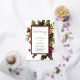 Ein ätherisches Blumenstrauß in den Farben Winterweiß, Gold, Orange und Dunkelrot mit Grün auf einem weißen, duskischen Gold und dunkelroten Tuch über einem weißen Hintergrund lädt Ihre Gäste zu einer unvergesslichen rustikalen Hochzeit mit elegantem Anlass ein. Die Rückseite weist einen dunkelroten Hintergrund auf. Fügen Sie einfach Ihre Namen und Hochzeitsdetails hinzu. Der gesamte Text ist in einer echten Folie. Skripttext kann nur vom Designer bearbeitet werden - bitte Nachrichtendesigner, wenn Sie diese Änderung benötigen. Composite Design von Holiday Hearts Designs (Rechte vorbehalten).