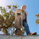 Rustikal bedrückte dunkle Außenfassade Barnholzmus Skateboard