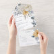 AUCH MIT EINEM QR CODE IM UAWG BEREICH ERHÄLTLICH. Dieses wunderschöne Design mit staubblauen, blassgelben und weißen Blume auf weißem Hintergrund. Personalisierte All-In-One-Einladungen sind eine einzigartige Kombination aus einer schön gedruckten, maßgeschneiderten Einladung und einer leicht zu abreißenden perforierten UAWG-Postkarte. Und sie sind so einfach zu bedienen! Man falte einfach, dann Siegel die Rückklappe mit den drei beiliegenden Klarkleben, und Post. Und wenn Ihre Gäste Ihre persönliche Einladung erhalten, reißen sie einfach die perforierte RSVP Karte ab und lassen sie in der Mail an Sie zurück!