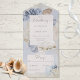 ERHÄLTLICH MIT ODER OHNE QR CODE ODER MIT ODER OHNE AUSWAHL DES ABENDS. Dieses Design besticht durch ein Strandmotiv mit staubigen blauen Korallen, bräunlichen, cremefarbenen und braunen Muscheln, Seestern und Meeresleben auf einem weichen, staubigen blauen Hintergrund, der durch Champagnergold gestört ist. Fügen Sie Ihrer Einladung einen QR-Code hinzu, damit Besucher schnell auf Ihre Hochzeitswebsite für Details, Anleitungen, Menüoptionen und mehr zugreifen können, oder fügen Sie Ihre Geschenkregistrierung Web-URL. Personalisierte All-In-One-Einladungen sind eine einzigartige Kombination aus einer schön gedruckten, maßgeschneiderten Einladung und einer leicht zu abreißenden perforierten UAWG-Postkarte. Und sie sind so einfach zu bedienen! Man falte einfach, dann Siegel die Rückklappe mit den drei beiliegenden Klarkleben, und Post. Und wenn Ihre Gäste Ihre persönliche Einladung erhalten, reißen sie einfach die perforierte RSVP Karte ab und lassen sie in der Mail an Sie zurück!