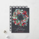 Rustikal blumenrot-grau Weihnachtskranz glücklich Feiertagskarte