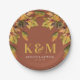 Rustikal-braune Herbst-Foliage-Hochzeit im Herbst Monogramm Papier-Teller.