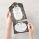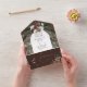 AUCH MIT EINEM QR CODE ZUM SCAN ODER MIT ABENDESY OPTIONEN. Dieses Design ist mit einem rustikalen grünen Kiefer und einem pineconfarbenen Bouquet auf einem weichen Kakaoboden mit weißen Blume ausgestattet. Es wird durch ein weißes, glänzendes Overlay hervorgehoben, um den Zauber der schönen Winterferien zu veranschaulichen. Ideal für eine Weihnachts- oder Winterhochzeit. Personalisierte All-In-One-Einladungen sind eine einzigartige Kombination aus einer schön gedruckten, maßgeschneiderten Einladung und einer leicht zu abreißenden perforierten UAWG-Postkarte. Und sie sind so einfach zu bedienen! Man falte einfach, dann Siegel die Rückklappe mit den drei beiliegenden Klarkleben, und Post. Und wenn Ihre Gäste Ihre persönliche Einladung erhalten, reißen sie einfach die perforierte RSVP Karte ab und lassen sie in der Mail an Sie zurück!