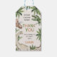 Rustikal Brown Green Boys Dinosaurier Geburtstagsgeschenk Tags Niedlichen Jungen Dinosaurier Thema Geburtstag Gunst Tag Tag Tag mit drei Dinosaurier und Grün. Die Rückseite des Tags weist ein Dinosaurier-Ei- und Grünmuster auf.