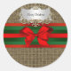 Rustikal Burlap Red Green Bow Ribbon Runder Aufkleber