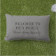 Moderne rurstische dunkelgraue Begrüßung zu unserer Veranda Skript, Familienname Freibad Sie können es personalisieren und Ihren eigenen Text und Namen hinzufügen.
