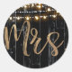 Rustikal dunkles Holz & String Lights Gold Bride M Runder Aufkleber