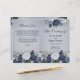 Ein wunderschönes und elegantes Hochzeitsprogramm mit wunderschönen blau-weiß gestrichenen Rose auf einem klassisch staubigen blauen Hintergrund. Sie können den Text individuell gestalten, indem Sie eine eigene Nachricht hinzufügen. Sie können auch den Stil des Schriftartes, die Farbe und die Position ändern, indem Sie im Menü "Anpassen" den Eintrag auswählen.