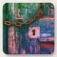 Rustikal gestrichene Holzketten, blau pink Getränkeuntersetzer