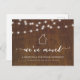 Lass deinen Freunden und Bekannten, dass du eine neue Adresse mit dieser rustikalen Postkarte kennst. Die Vorderseite der Karte bietet einen dunklen Holzboden mit mehreren Lichterketten und einem kleinen rustikalen Haus.
