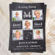 Rustikales Chalkboard Einzigartige Beerdigung Danke Karten. Diese Beileid Beerdigungskarten verfügen über eine einzigartige Collage aus Foto für 6 Ihrer Lieblings-Fotos, Monogramm Initial und Name, ein herzliches Zitat "In Loving Memory...Loved Beyond Words, Missed Beyond Measure.. Forever in our Hearts" auf der Tafel in grauem und weißem Design. Diese Gedenkkarten eignen sich hervorragend für die Begräbniskarten, oder für die Feier des Beileids dank der Dankkarten. Personalisieren Sie Ihre Rückmeldung mit Ihrer Danksagung, Name und Daten. ...COPYRIGHT © 2020 Judy Burrows, Black Dog Art - Alle Rechte vorbehalten. Rustikal in Liebe Erinnerung 5 Fotos Beileid Beerdigung Danke Karte