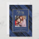 Die elegante Weihnachtsgrüßkarte mit ihrem karierten, blauen und schwarzen Hintergrund und den luxuriösen Goldakzenten. Auf der Vorderseite der Karte steht Platz für ein Foto der Familie und ein herzlicher Gruß für den Urlaub: "Warme Wünsche für eine Saison voller Liebe und Lachen." Die Rückseite erlaubt ein zusätzliches Foto und eine Dankesbotschaft, die perfekt ist, um die Freude der Saison mit den Lieben zu teilen. Die klassische karierte Gestaltung und die goldene Detaillierung sorgen für eine Touch an Eleganz und machen diese Karte zu einer zeitlosen Wahl, um den Feiertagssjubiläum zu verbreiten.