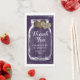Rustikale lila Hochzeitspapierservietten mit Maurerkirsche und Kaminherzen auf Stallholzhintergrund.