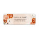 Diese wunderschönen und romantischen Hochzeitsfeier-Rücksendeadressen-Aufkleber zeichnen sich durch trendigen Bohustyp und eleganten Text aus. Rustikal-böhmische Orange-, Pfirsich- und Blütenbäume sowie neutrale botanische Blätter schmücken die Ecken, mit dezenten Aquarellspritzungen auf sanftem, blütendem Hintergrund.