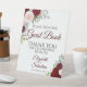 Dieses schöne Schild lädt Ihre Hochzeitsgäste ein, Ihr Gästebuch zu unterschreiben. Das rustikale boho blumengeschmückte Design besticht durch handgemalte Aquarelltöne in Bordeaux-, Rot- und Rosatönen. Es gibt Platz für die Namen des Paares sowie für das Hochzeitstag.