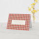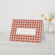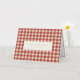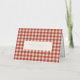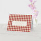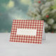 Rustikale, gefaltete Weihnachtskarte mit elegantem Design mit dem aufbearbeitbaren Gruß "Frohe Weihnachten" zusammen mit Ihrem Namen über einen Vintagen Stil Gingham Muster Hintergrund.