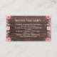 Hier ist ein Lieblingbuch für die Kinderkarte, die mit den Einladungen für Ihre Babydusche passt. Dieses Design besticht durch einen dunklen Holzhintergrund, der von einer süß rosa Rosa Aquarellblüte gesäumt wird, zusammen mit Ihren Büchern für Babydetails. Und auf der Rückseite sind die gleichen Aquarellfarben-Rose in einem süßen Wiederholmuster. Wenn Sie eine Designfrage haben oder dieses Design auf einem anderen Produkt sehen möchten, kontaktieren Sie mich bitte unter jschmidtdesignworks@gmail.com. Design © Judith Schmidt.