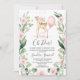 Rustikal Pink Blumengarten Hirschdusche Einladung Sweet pink oder rot Blütenblau und Blätter Kranz Hirsche Thema Babydusche Einladung. Dieses Design verfügt über einen Doe , Kranz und rosa Ballon.