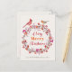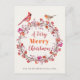 Rustikale, elegante Weihnachtspostkarte ohne Foto mit niedlichem, warmen Aquarell, Bordeaux, lila, rosa und orangefarbenem Holly-Kranz mit Laub und zwei Vögeln - Kardinal und Rotkehlchen - und einer modernen zeitgenössischen Typografie "A Very Merry Christmas" über einen Elfenbeinrot-klaren Hintergrund, die ihm eine Vintage Retro-Touch verleiht. ++++++++++++ Persönlich mit drei Wunschreihen und Ihrem Namen auf der Vorderseite und Absenderadresse, Text und Ihrer Unterschrift auf der Rückseite!