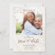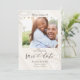 Einfach rustikal - Ihr Foto vor einem sanften, warmen Waldkorn und Blätterbäume, die schön von Ihrem Foto Set - Freuen Sie sich auf die Einführung von "Wir machen es! " führt aus dieser einmaligen Save the Date-Einladung - Wir haben eine leicht zu bedienende Vorlage mit handgeschriebener Kalligrafie "Save the Date" erstellt, die die Farbe leicht an Ihre Stimmung anpassen kann - wir wählten eine warme braune, zusätzliche Informationen auf der Rückseite
