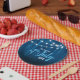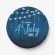 Diese Papiertafel aus Party vom 4. Juli ist mit einem rustikalen, dunkelblauen Holzboden versehen, der mit Lichterketten versehen ist. Das ist perfekt für den Grillabend im Familienhof am 4. Juli.