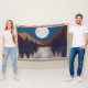 Ein schönes Design, das einen Wald, eine Berglandschaft und Vollmond zeigt, der im Wasser reflektiert. Die Farbtöne sind in neutralen Tönen wie Blau, Braun, Beige und Grau gehalten. Ein rustikales Design ideal für alle Jahreszeiten, Sommer, Winter, Herbst, Herbst und Frühling.